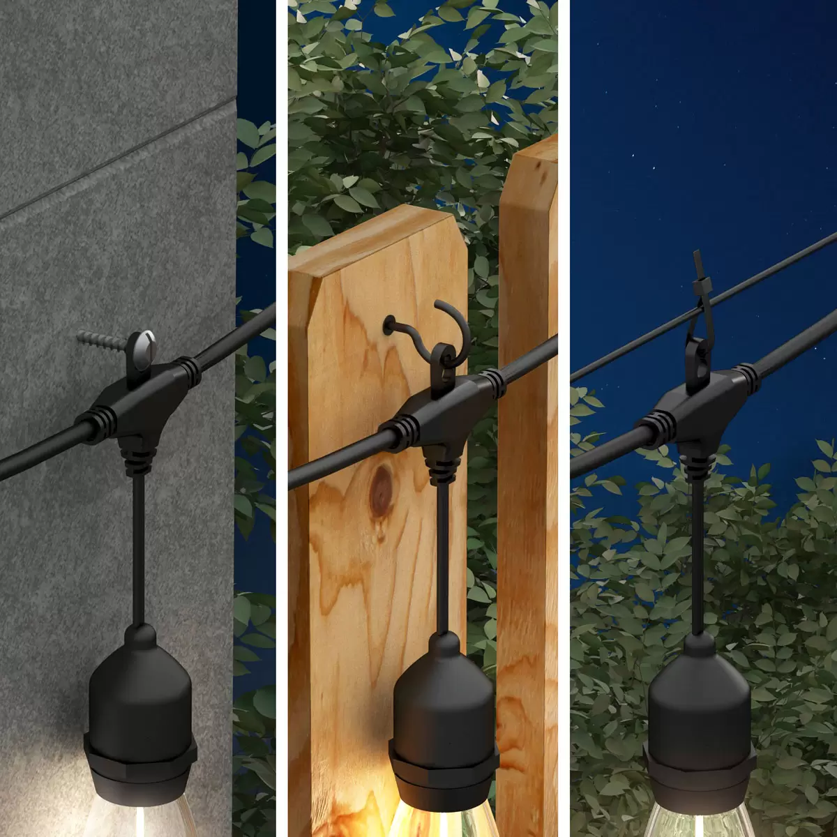 Stretching 12.8m (42 ft) in length, it lights up large spaces with four different lighting modes. The 3m (10 ft) extension cord lets you position the solar panel in the sunniest spot in your yard. Installation is simple—mount it on a wall using screws, stake it into the ground, or attach it to a panel with the mounting clip.