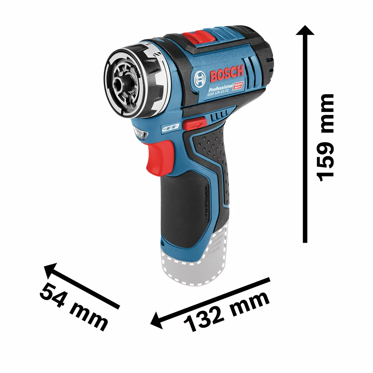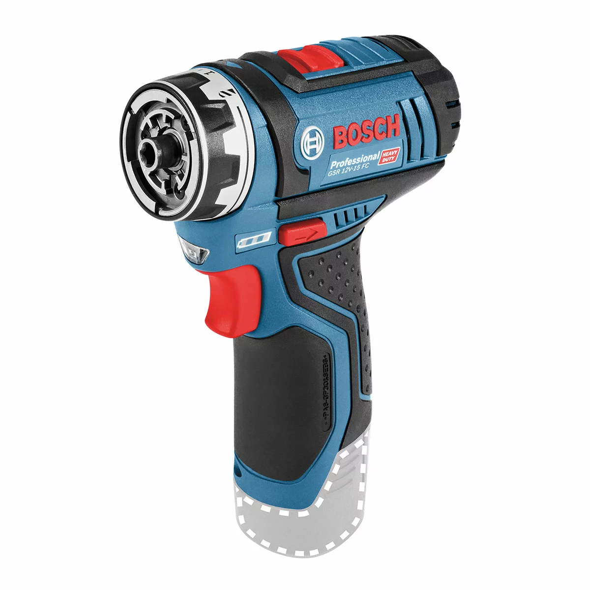 The Bosch GSR 12V-15 FC Professional Cordless Drill Driver delivers outstanding versatility and control, designed to handle drilling and screwdriving tasks with ease, even in tight or awkward spaces. Featuring the innovative FlexiClick System, this lightweight tool allows quick swapping between multiple attachments, letting you adapt instantly for different applications without compromising performance.