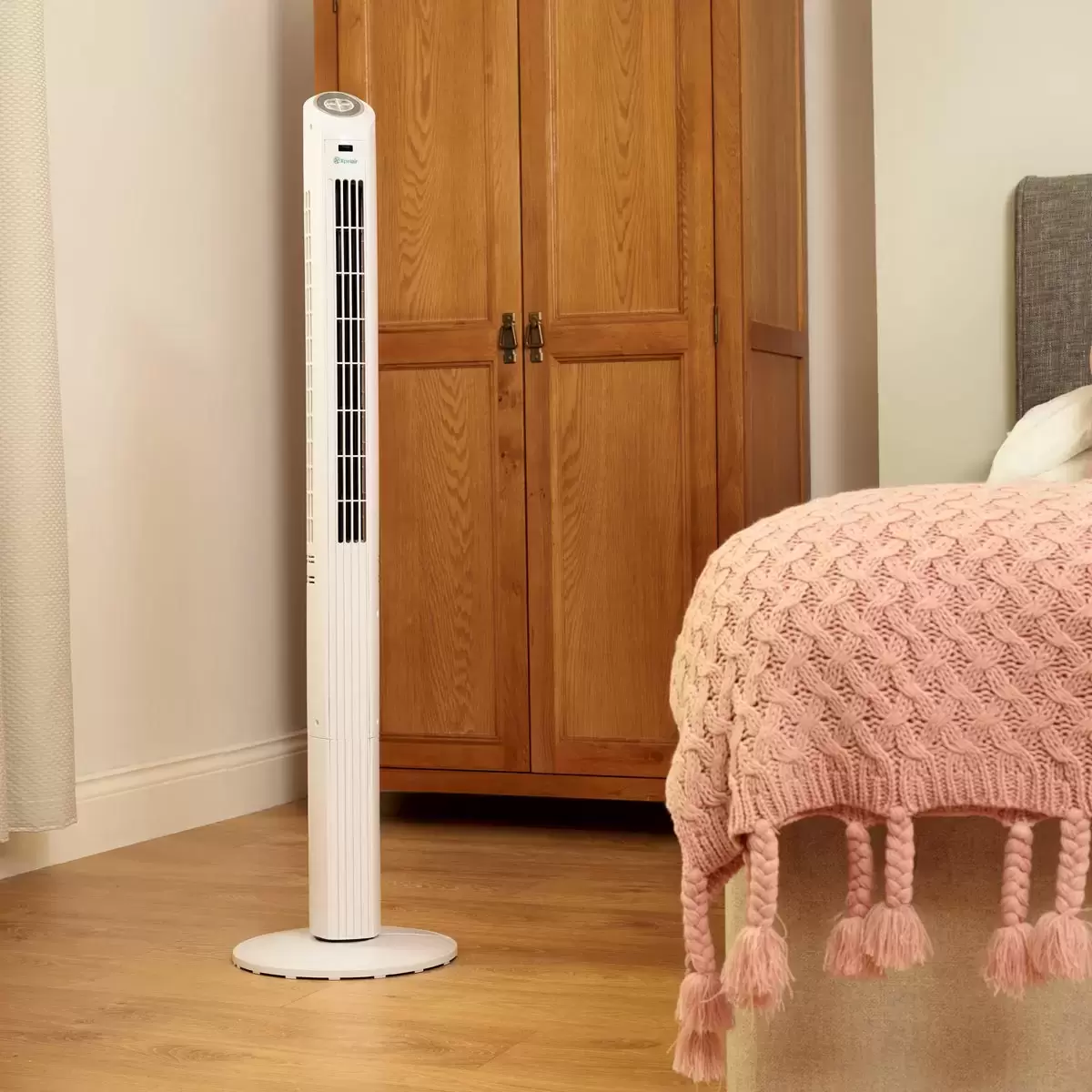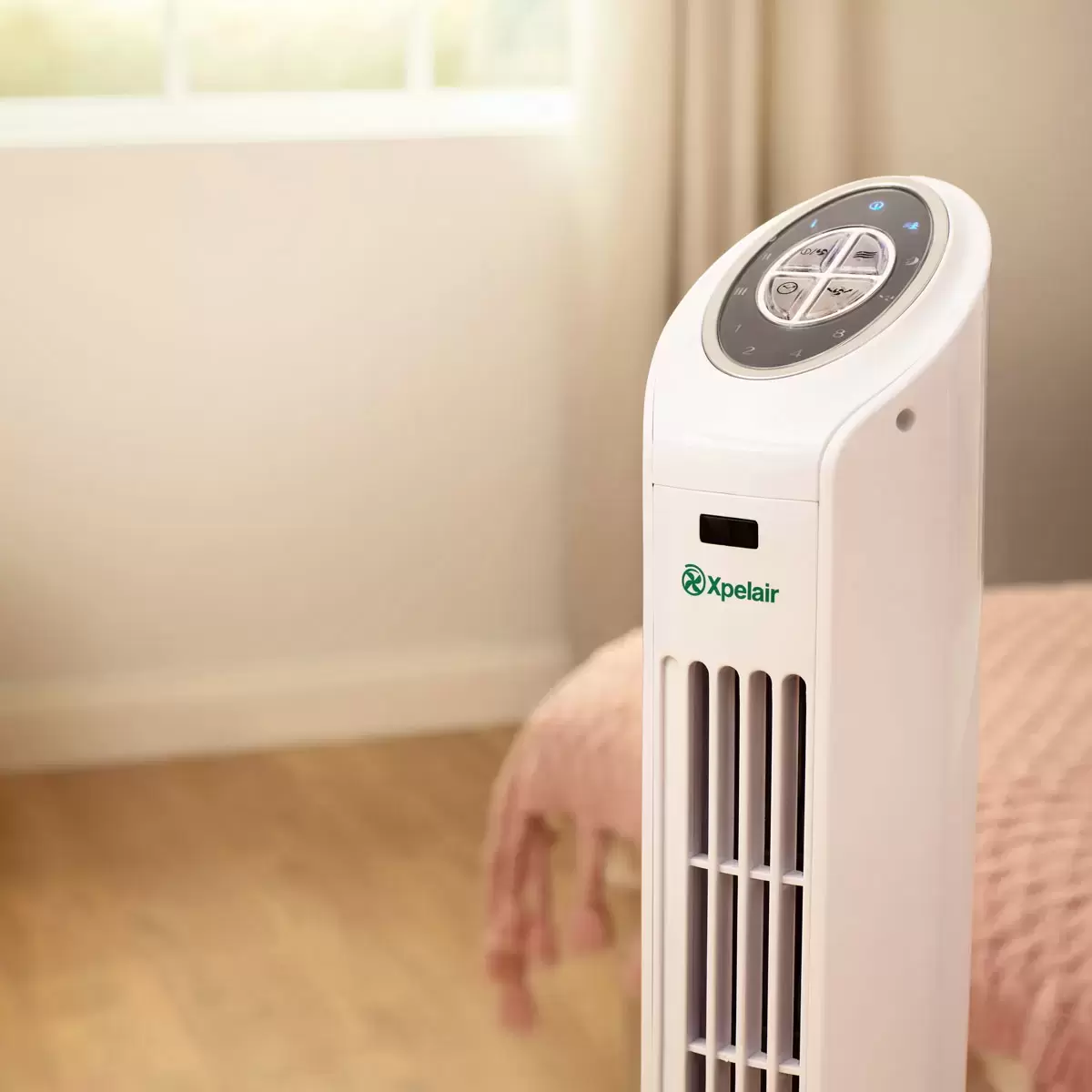 The Dimplex Xpelair Mont Blanc tower fan is a stylish way to keep cool at home or in the office. The tall, slim frame with a solid white finish has been designed with both practicality and style in mind. Three speed settings can be selected from the LED display or by using the remote control. The small base of the fan means that it can easily be stored in the corner of a room. whilst the handle allows you to move it easily between rooms.