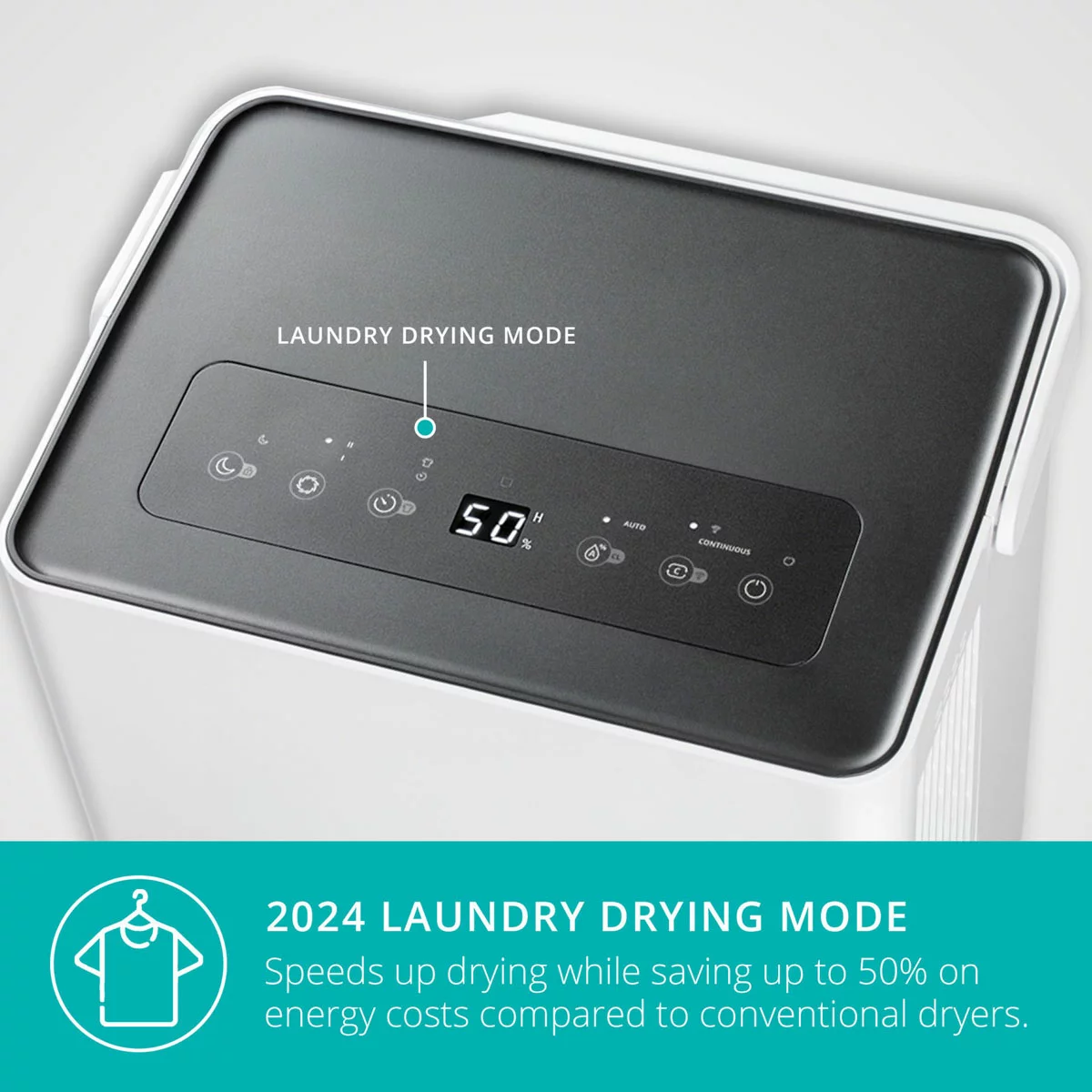 The dedicated laundry drying mode runs on a 4-hour timer to dry clothes quickly, using up to 50% less energy than traditional tumble dryers.