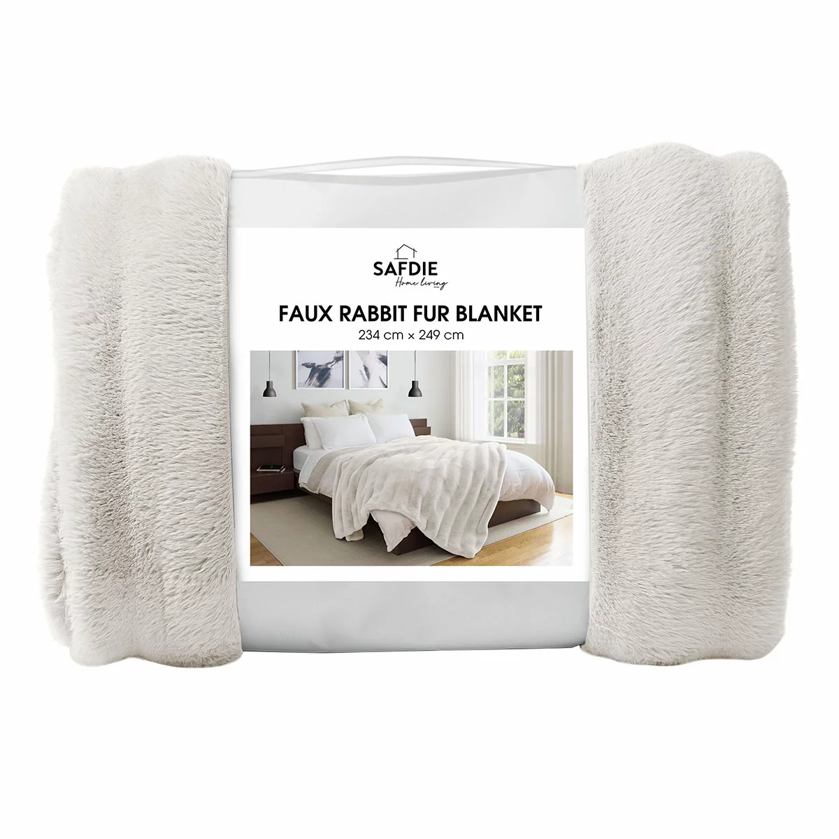 Faux Rabbit Fur Blanket in Ivory 234 x 249 cm