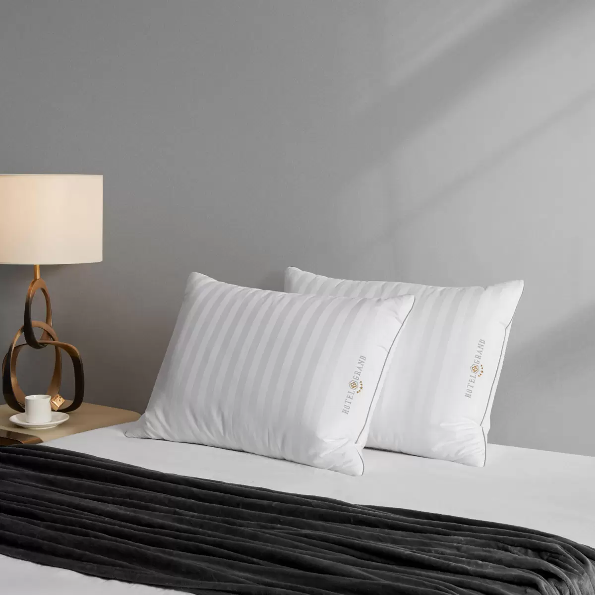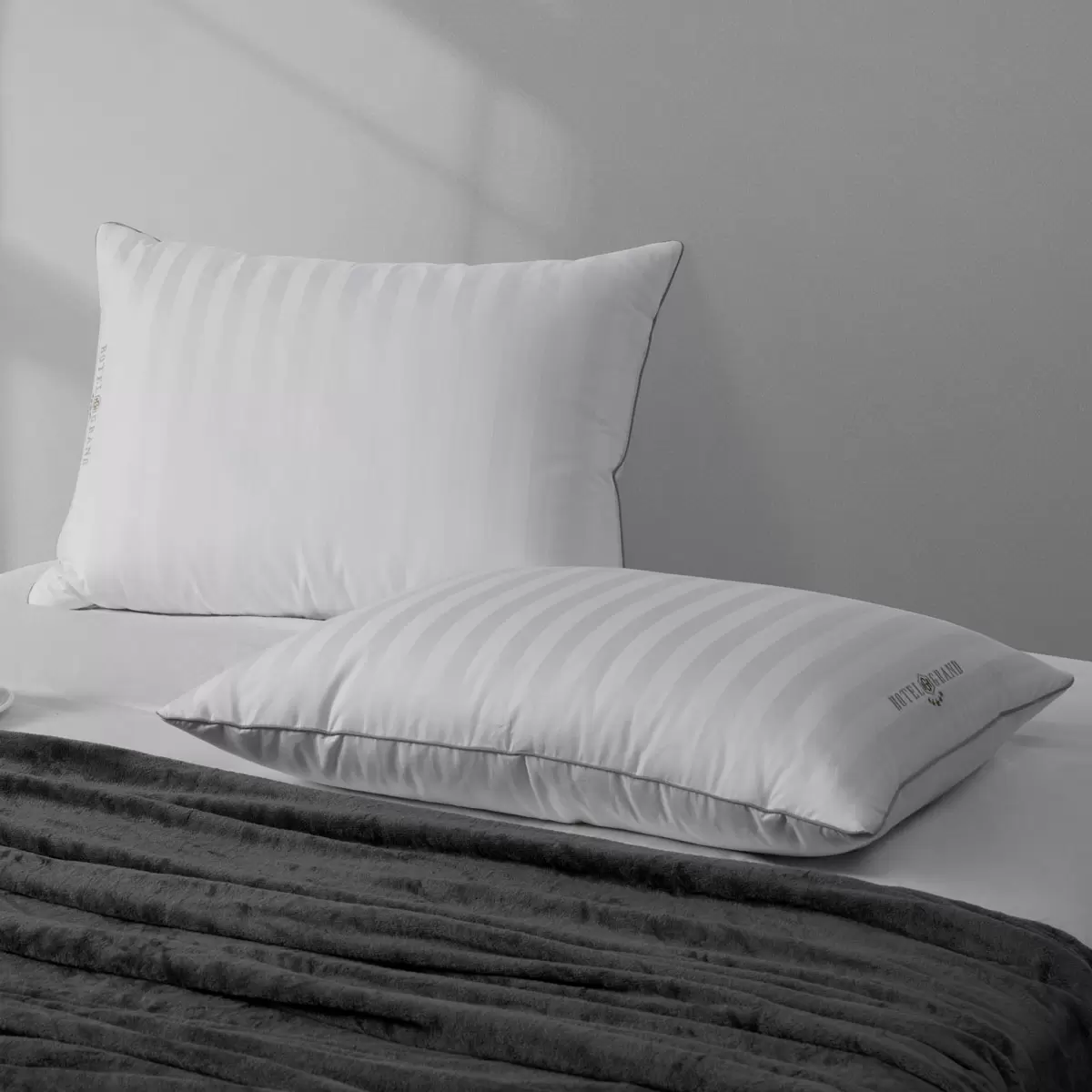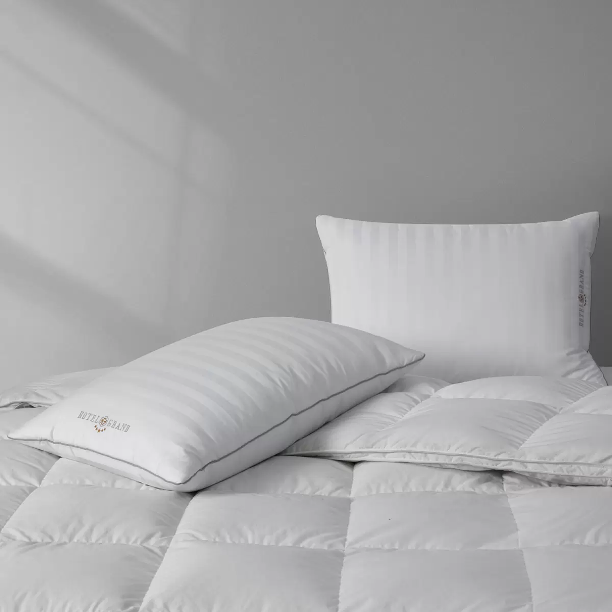 Experience luxurious comfort with the Hotel Grand Feather Down Rolled Pillow 2 Pack – filled with a natural blend of down and feathers to gently support and conform to your head and neck.