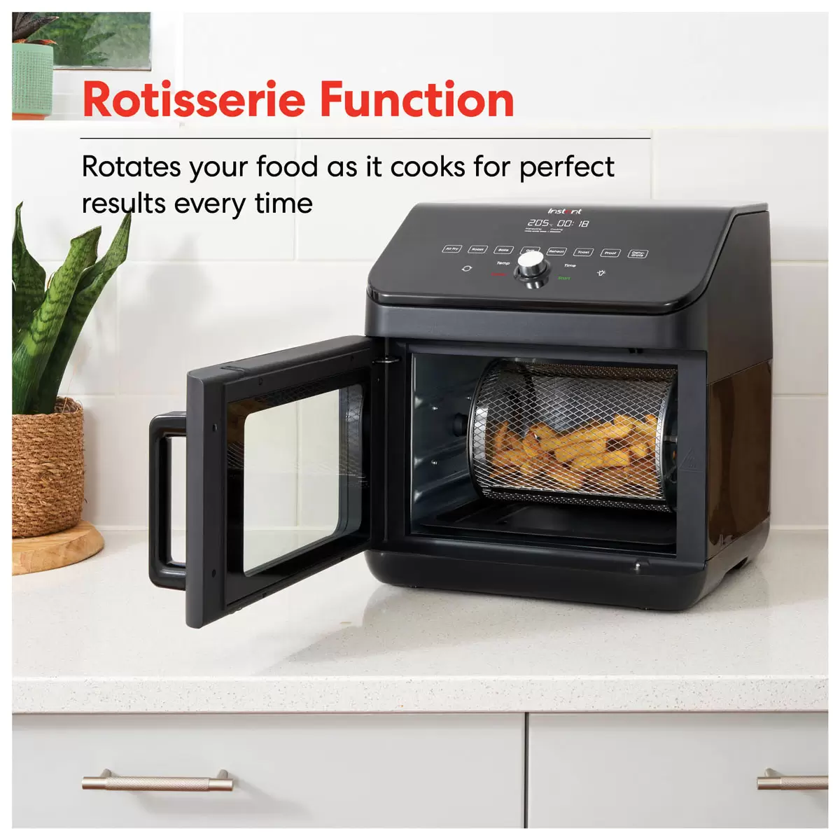 Elevate your air frying game with the Instant Gourmet Air Fryer Oven – even more cooking space to cook everything your oven can, plus rotisserie spit.