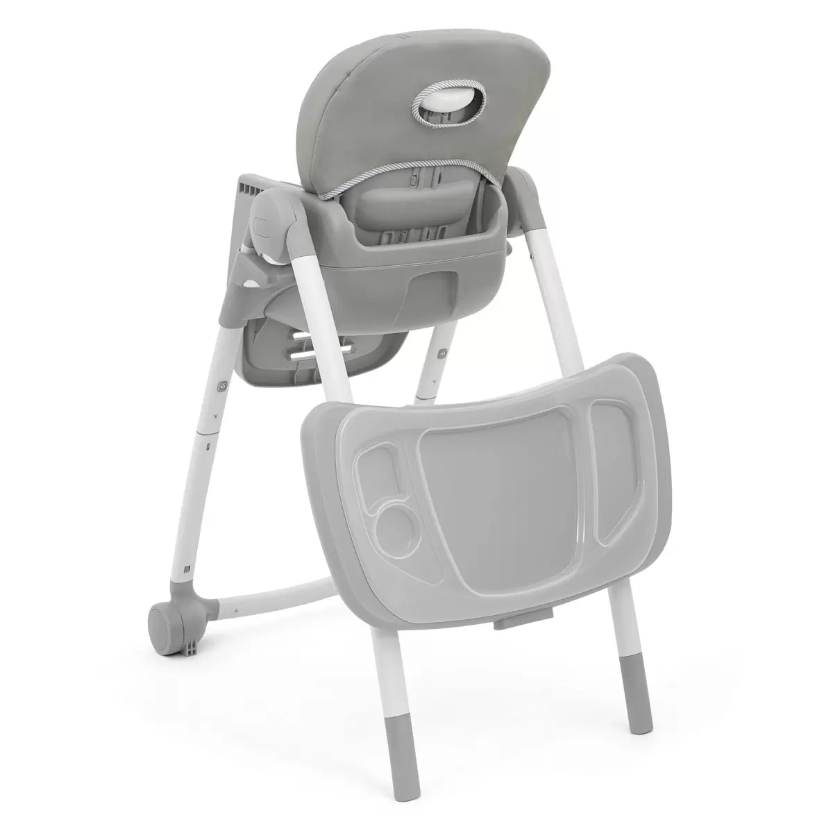 Integrated front wheels make moving the chair a breeze, while the removable, washable infant insert and seat pads keep cleaning simple and hassle-free.