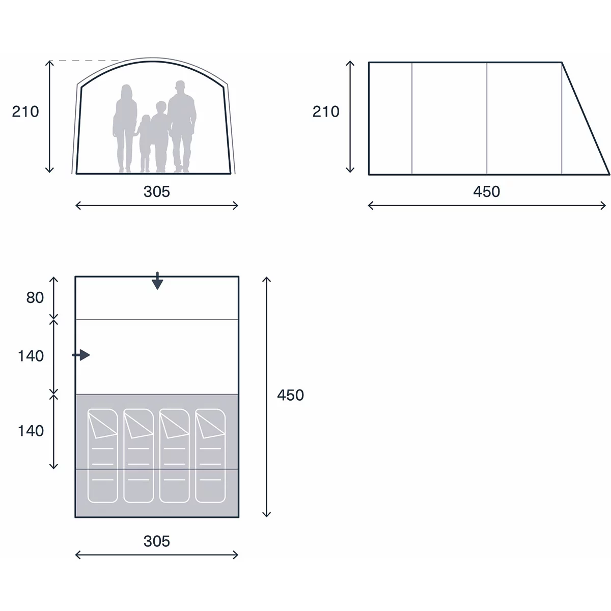 Your dependable base camp for everyday escapes. Sleeps up to 4 people and features an enclosed inner tent, sewn-in groundsheet and a standing height tunnel. Fibreglass poles and 75D polyester fabric offer you a reliable shelter, while front and side entry points make settling in effortless.