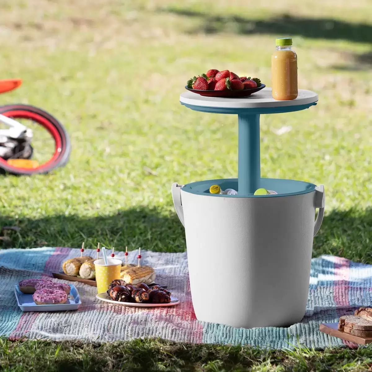 • Trendy portable and ultra handy 2-in-1 beverage cooler and side table