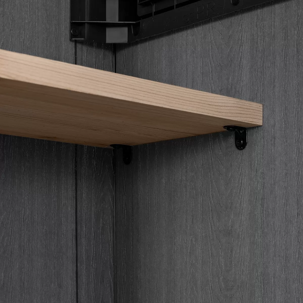 - A wooden shelf can be installed using the included adjustable brackets to expand the storage options