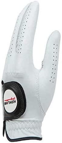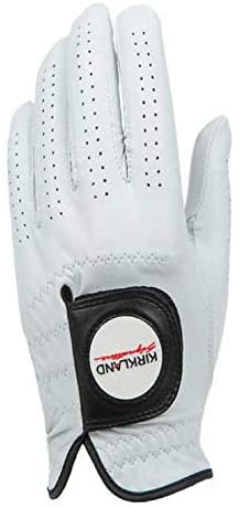 Introducing the Kirkland Signature Golf Glove with Premium Cabretta Leather and  Ball Marker. Premium Cabretta Leather “One Piece” Glove gives exceptional grip and resists moisture. This leather stays soft round after round while providing exceptional feel and durability. The closure tab provides comfort and a perfect fit.