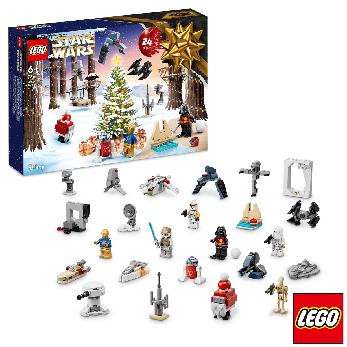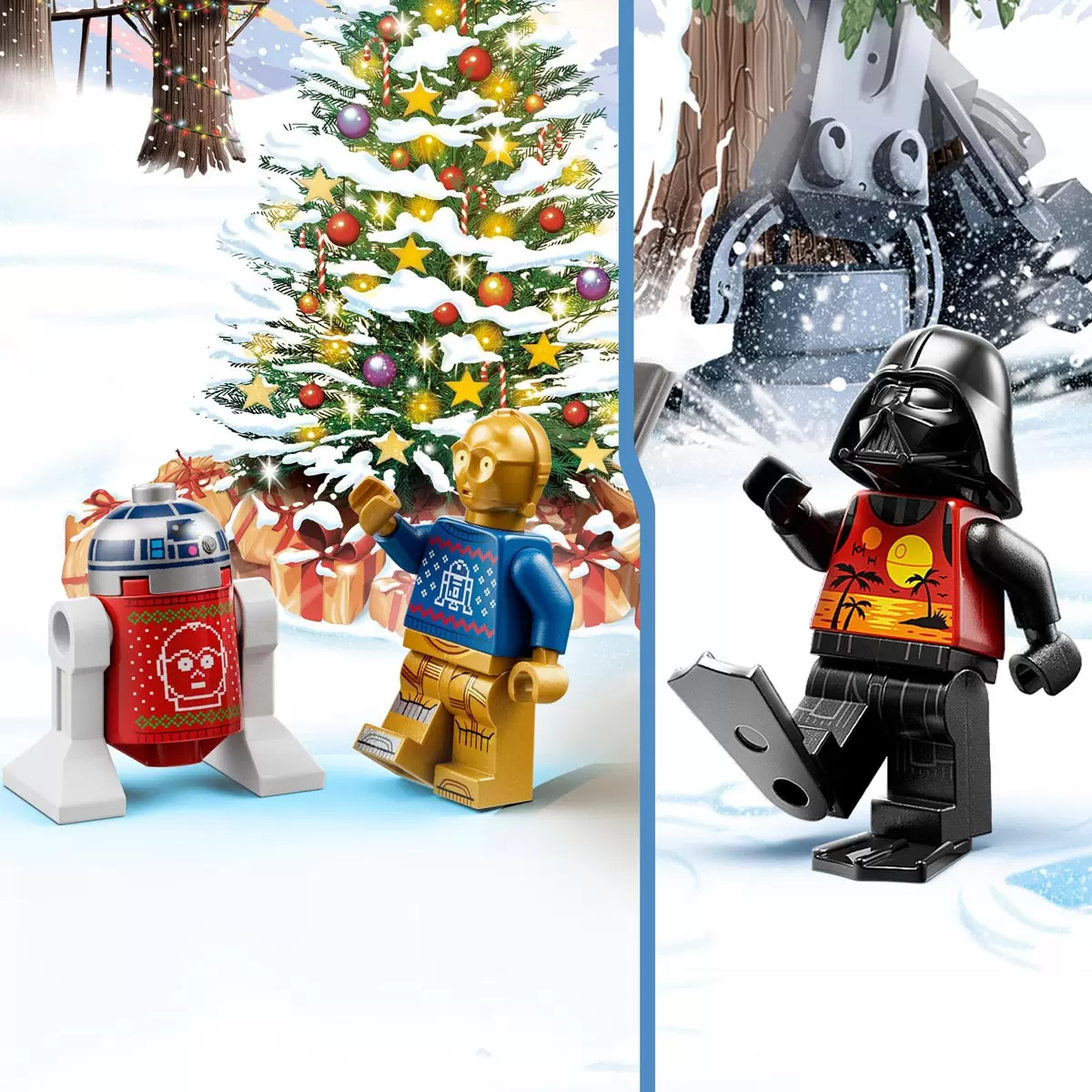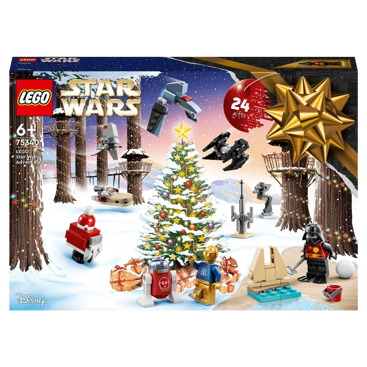 The LEGO Star Wars Advent Calendar Model 75340 for kids 2022 features collectible characters: C-3PO and R2-D2 in Christmas jumpers decorated with each other’s portraits, a Gonk Droid dressed as Santa and Darth Vader in a summer outfit from LEGO Star Wars Summer Vacation on Disney+. There are also Luke Skywalker, a Clone Trooper Commander and Snowtrooper LEGO Star Wars minifigures and a Battle Droid. LEGO Star Wars vehicles mini builds in the Advent Calendar include: an ARC-170 Starfighter, Luke’s Ground Speeder, Bad Batch Shuttle, V-35 Landspeeder and moisture vaporator. Kids will find assorted builds and accessories to play out Battle of Hoth stories, a Wampa cave in which the Luke Skywalker LEGO Star Wars minifigure can be hung upside down and a beach scene for Darth Vader on holiday.