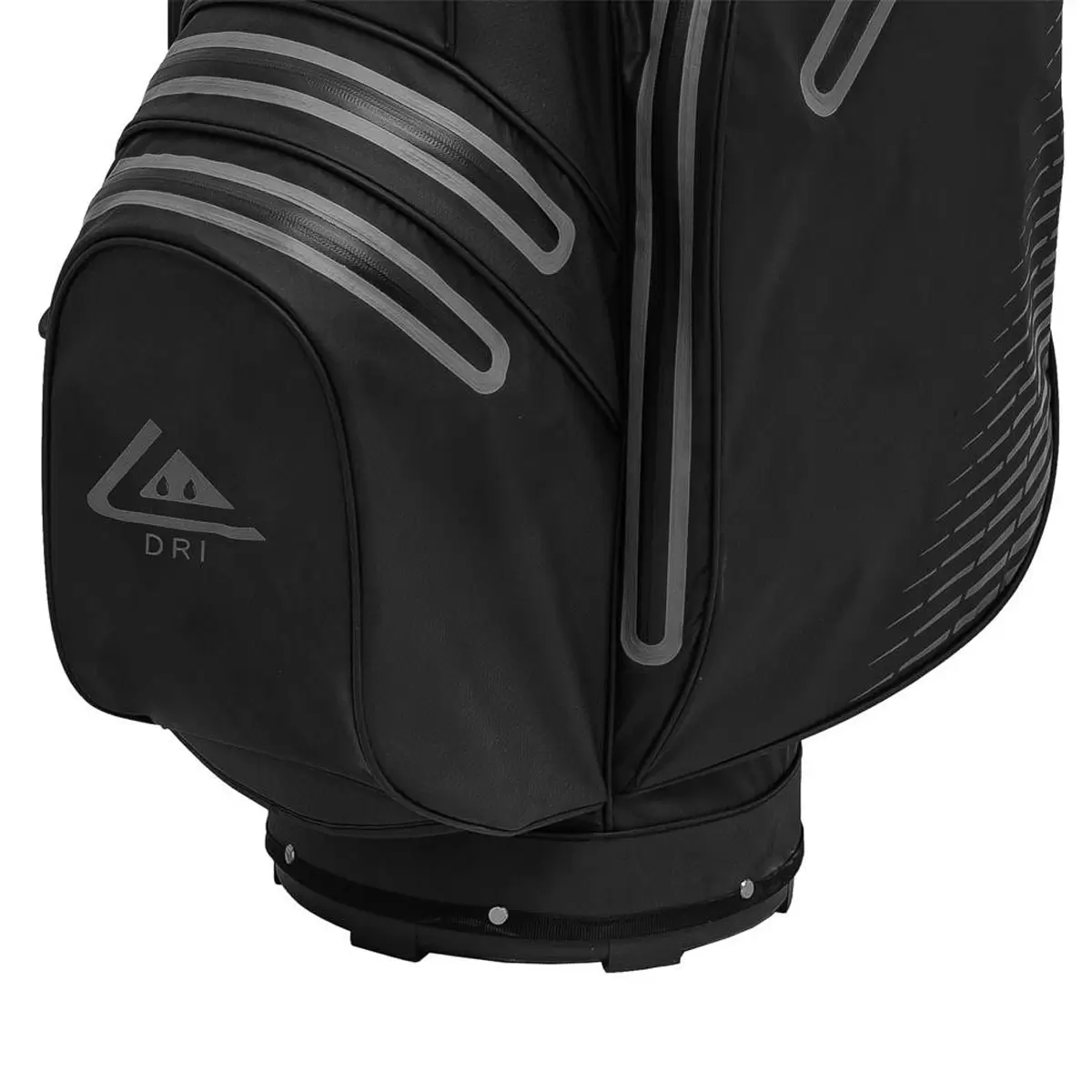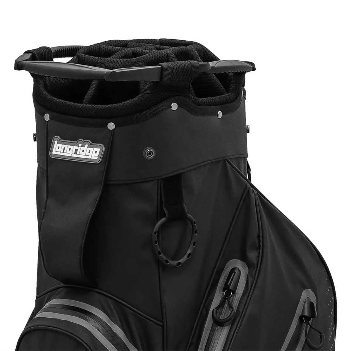 Stay organized and protected on the course with the Longridge Elements Waterproof Golf Cart Bag in Black and Grey. Featuring a 14-way divider top, 7 waterproof pockets, and ultra-light 2.2kg design for effortless performance in any weather.