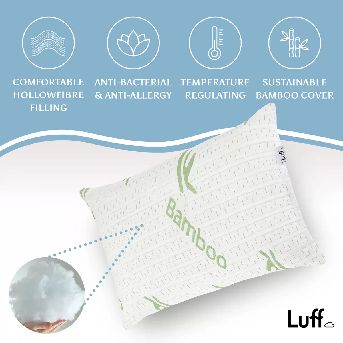 Experience supportive and comfortable sleep with the Luff Luxury Bamboo Memory Foam Pillow. Made from sustainable, eco-friendly bamboo, it’s naturally antibacterial and filled with Cubed CloudTec® memory foam for adaptive comfort. Rolled and vacuum packed for freshness.