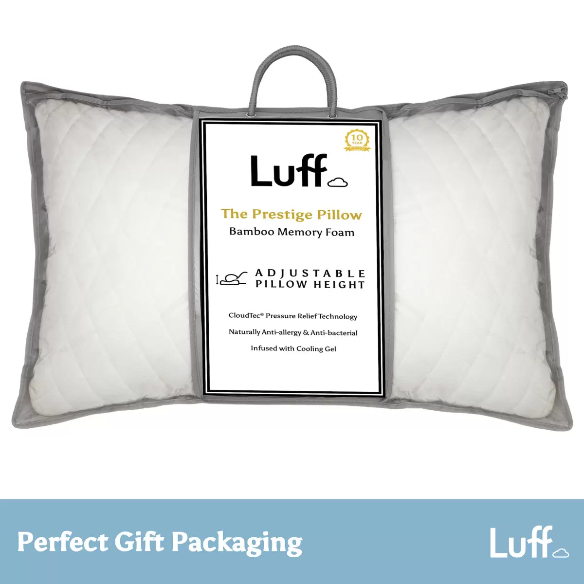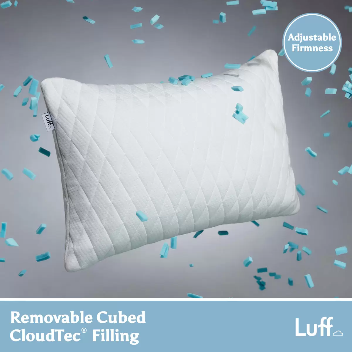 Luff Height Adjustable Prestige Bamboo Pillow – Customizable support with eco-friendly, antibacterial bamboo and removable Cubed CloudTec® filling. Vegan-friendly comfort for restful sleep.