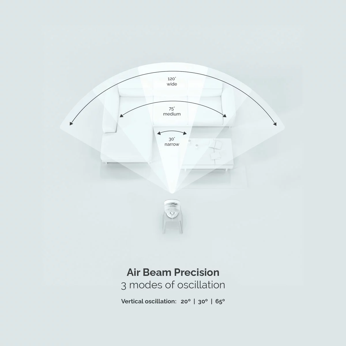 Air Beam Precision technology lets you direct airflow exactly where you want it, with multiple oscillation settings for full control. Combined with app connectivity, 12 fan speeds, and smart modes like Eco and Night, it ensures customised comfort throughout the day and night. Engineered with Meaco’s renowned quality and backed by a leading 3-year warranty, it’s designed for long-term performance.