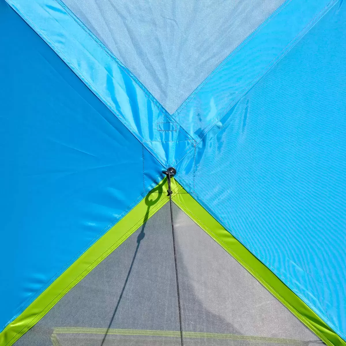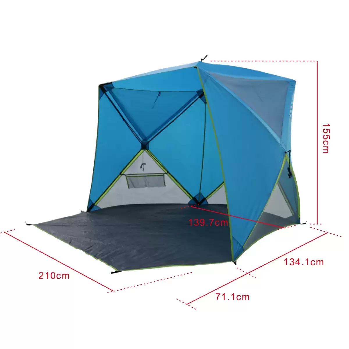 The Old Bahama Bay Pop up Shelter is a convenient and durable shelter that will protect you from the summer sun. Designed with convenience in mind, you can set this shelter up in just a mintue, removing hassle and allowing you to enjoy the great outdoors. Suitable on most terrains due to the integrated PE floor, you can take this shelter to the beach, on camping trips or even to sporting events. Included are 2 mesh windows, so you can still see what is going on in your surroundings, while the included curtains allow for some privacy. Fitted are 3 mesh vents for both excellent ventilation and to prevent the shelter from being lifted in light winds. Included steel tent pegs also help protect the shelter from wind. The Old Bahama Bay Pop Up Shelter has UPD 50+ fabric that blocks 98% of the harmful UV rays. Remove the polyethylene floor, to allow for more room for your picnic, beach or camping accessories.