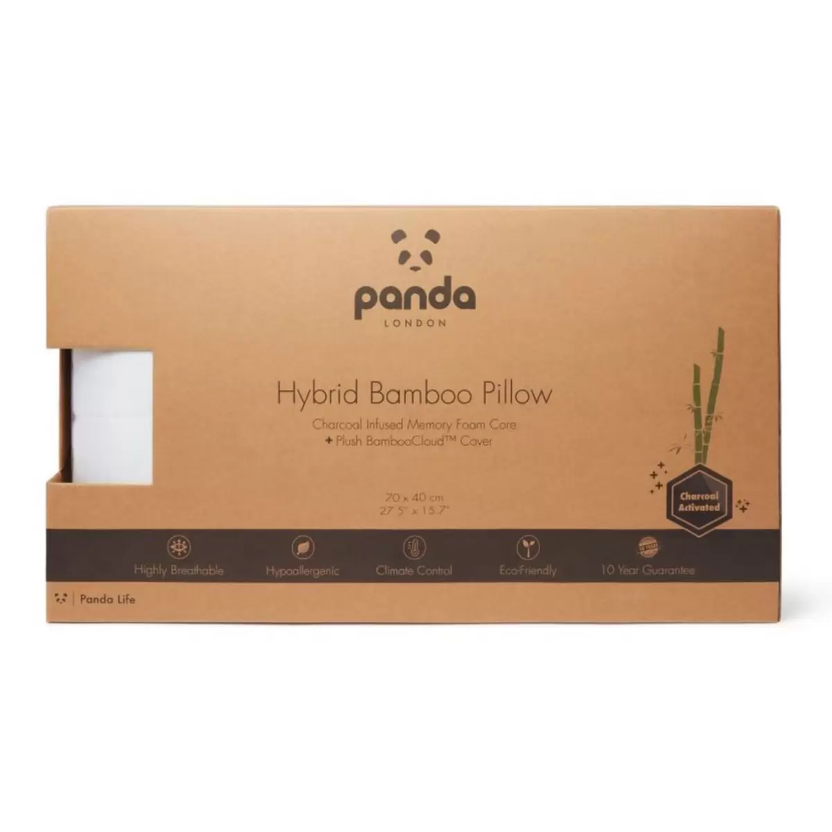 The Panda Hybrid Memory Foam Pillow combines cutting edge sleep science with Panda’s signature, premium bamboo. It features orthopaedic grade, adaptive CharcoCell Foam™, uniquely contouring to your sleeping position for ultimate comfort and support.