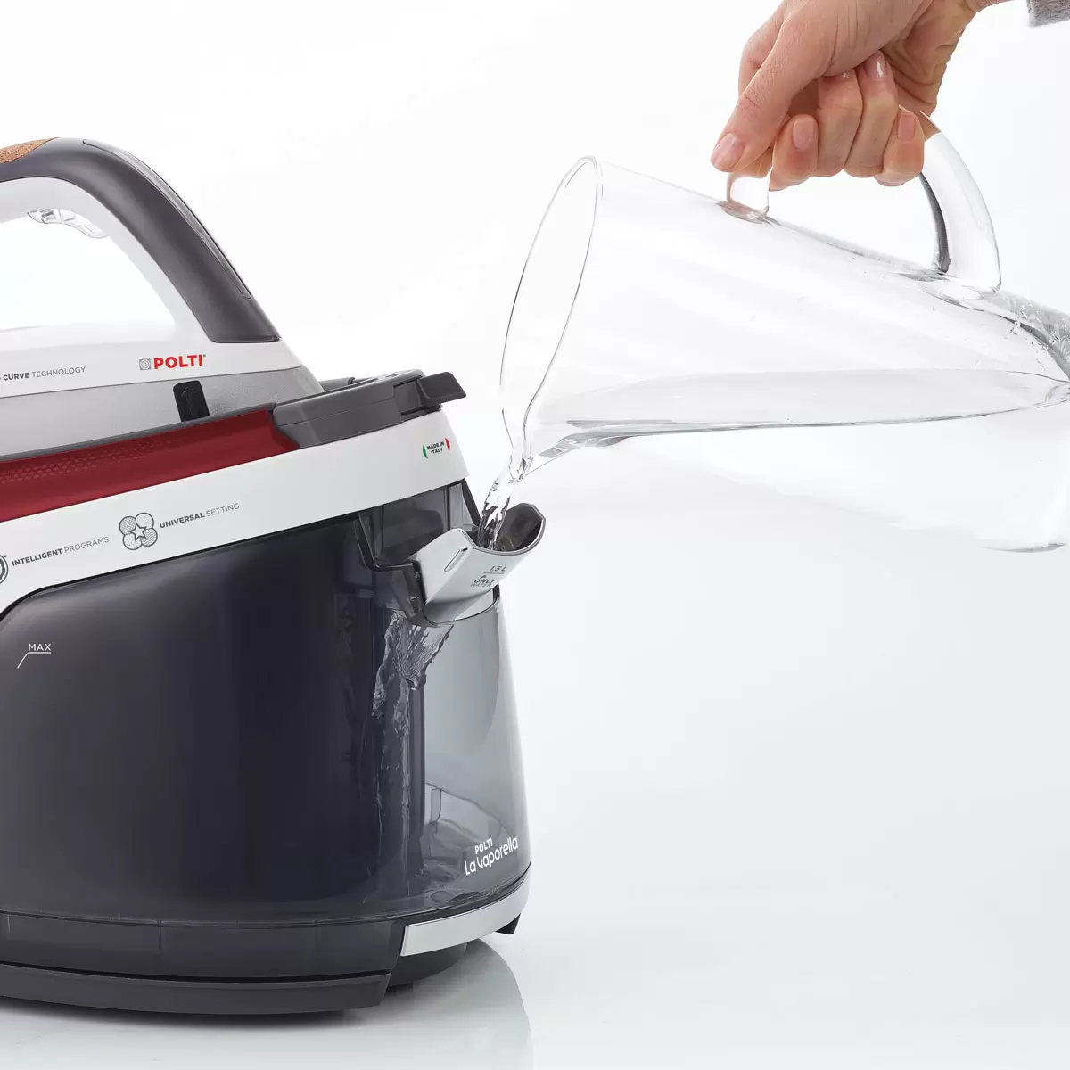 The Polti La Vaporella XB80C Steam Generator Iron allows you to iron in a simple and fast way thanks to the powerful boiler with unlimited autonomy of 7 bar boiler pressure and pump pressure of 15 bar. To guarantee maximum reliability over time, Polti La Vaporella has a powerful boiler guaranteed for 10 years with the exclusive no Calc Long Life Boiler Technology that prevents the negative effects of limescale, giving your boiler a longer life without any need for maintenance. Furthermore, the innovative soleplate with patented 360 Fluid Curve Technology, rounded and multidirectional, will eliminate even the most difficult creases without effort.
