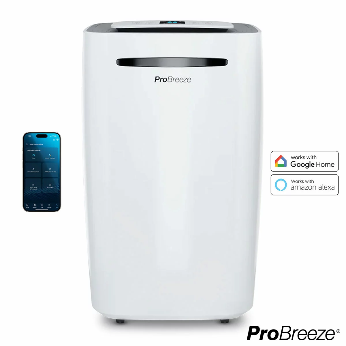 - Smart Control: manage settings via the Pro Breeze app or use voice control with Google Home and Alexa