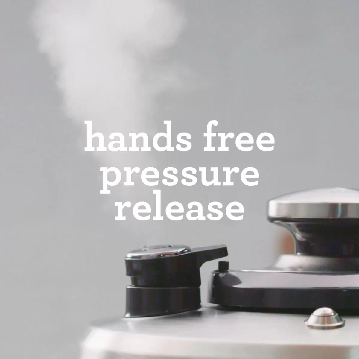 3 hands-free steam release settings. Natural pressure which slowly subsides inside without releasing steam, Pulse pressure which releases in bursts to reduce disturbance to the food and Auto Quick pressure is released quickly to minimise overcooking.