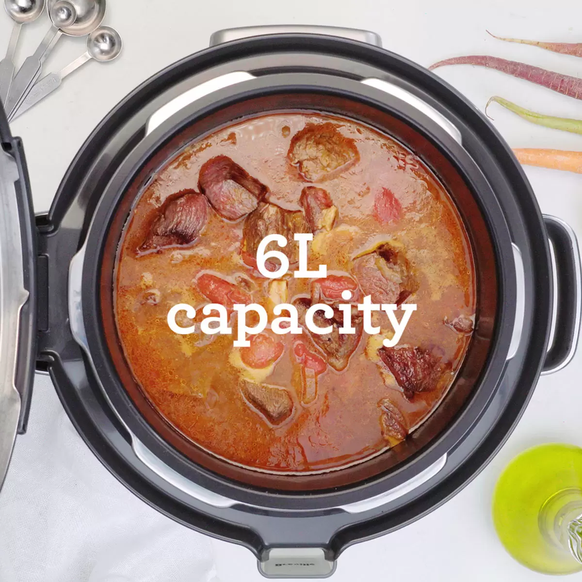 Featuring a large 6L stainless steel cooking bowl and trivet. Open the lid and pop in the dishwasher for easy cleaning.