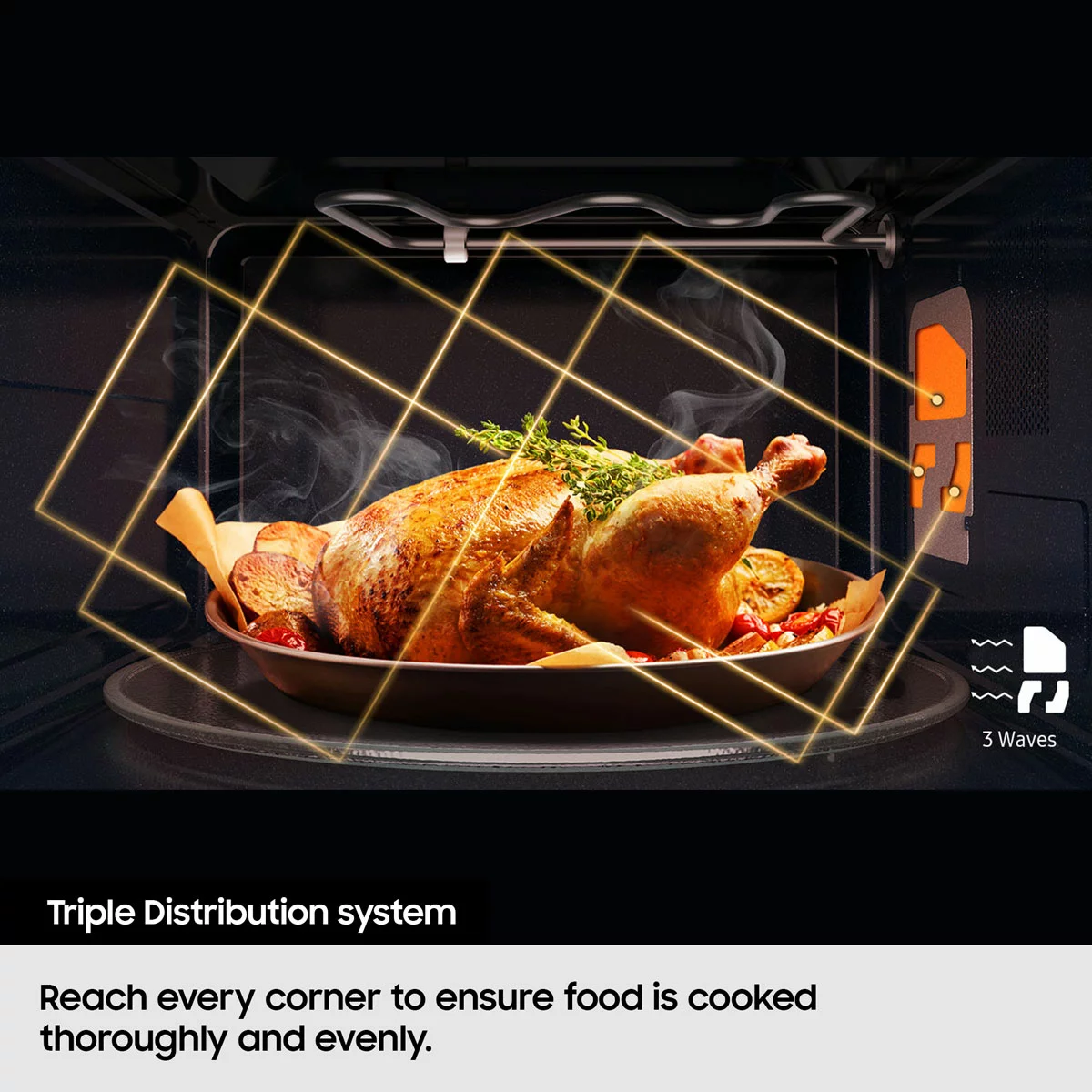 The Triple Distribution System circulates microwaves in three directions so heat reaches every corner, ensuring your meals are cooked thoroughly and evenly.
