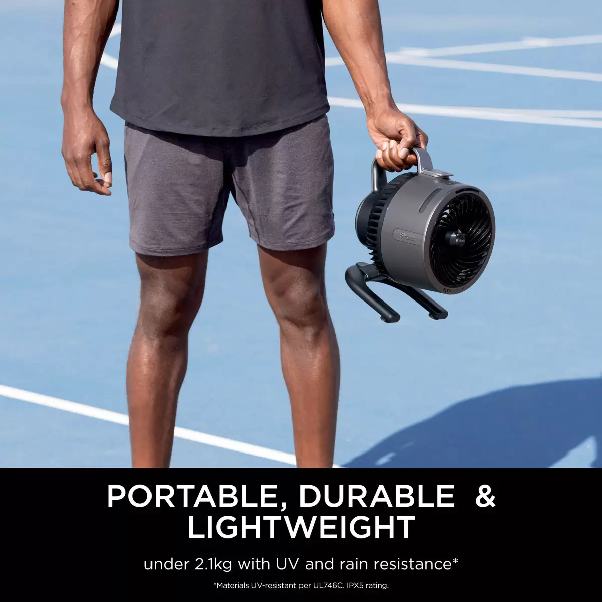 Lightweight and compact at under 2.1 kg, the HydroGo is your perfect on-the-go cooling companion. It offers up to 12 hours of cordless runtime on speed 1 without misting, keeping you refreshed longer without frequent recharging.
