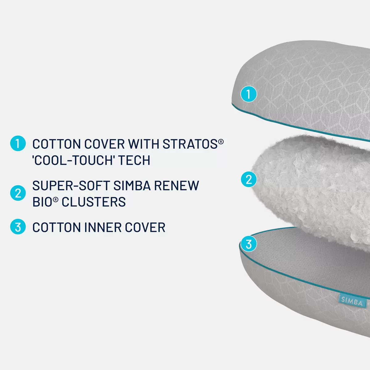Cloud-like comfort: Filled with Simba Renew Bio™, the pillow delivers a soft, down-like feel. Made from recycled plastic fibres that are carefully combed into springy, breathable layers, the fill encourages airflow to keep you feeling fresh all night long.