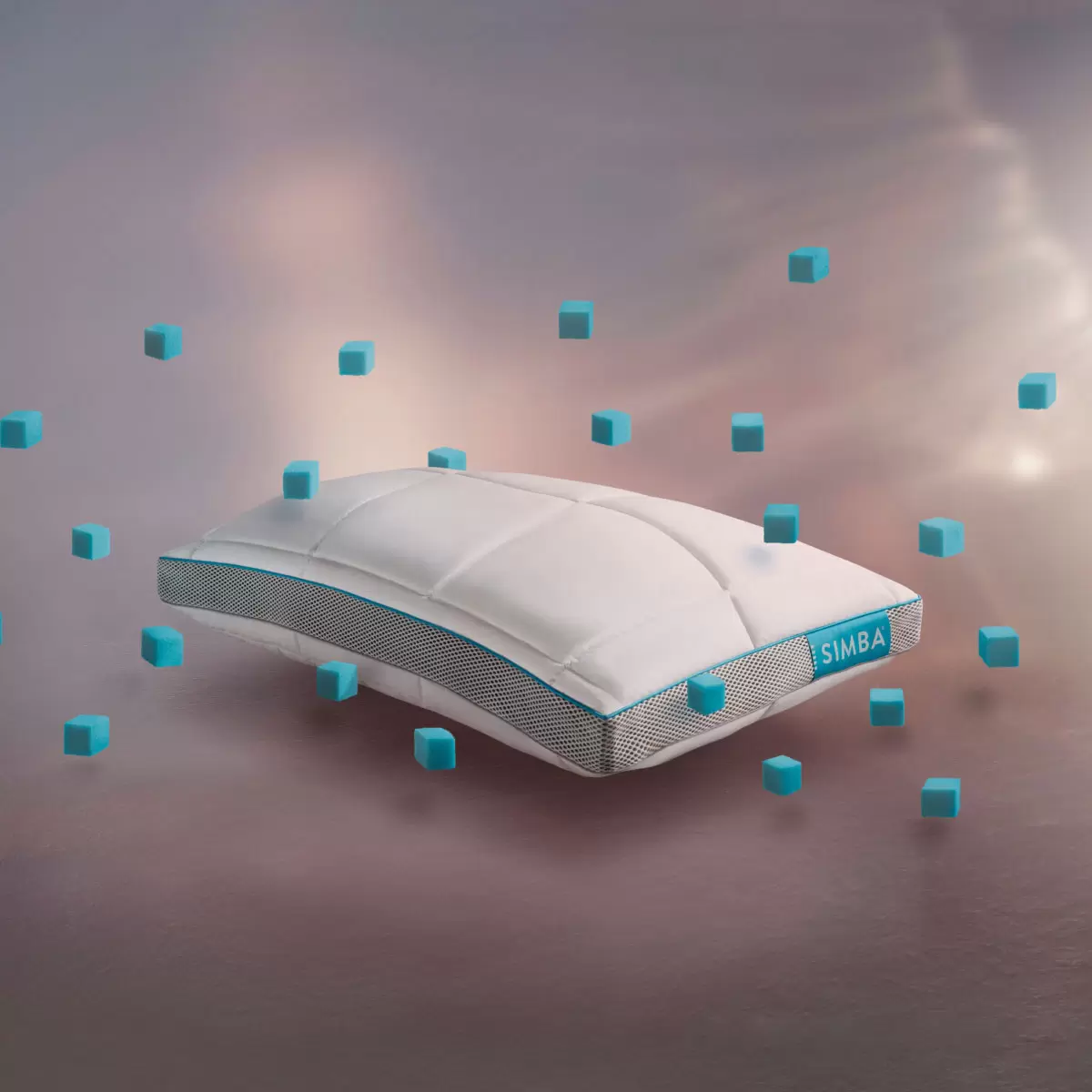 Discover the Simba Hybrid Pillow 45 x 70 cm with adjustable height & firmness, Stratos® cool-touch tech, down-like comfort, improved airflow, and machine-washable design for your perfect night’s sleep.