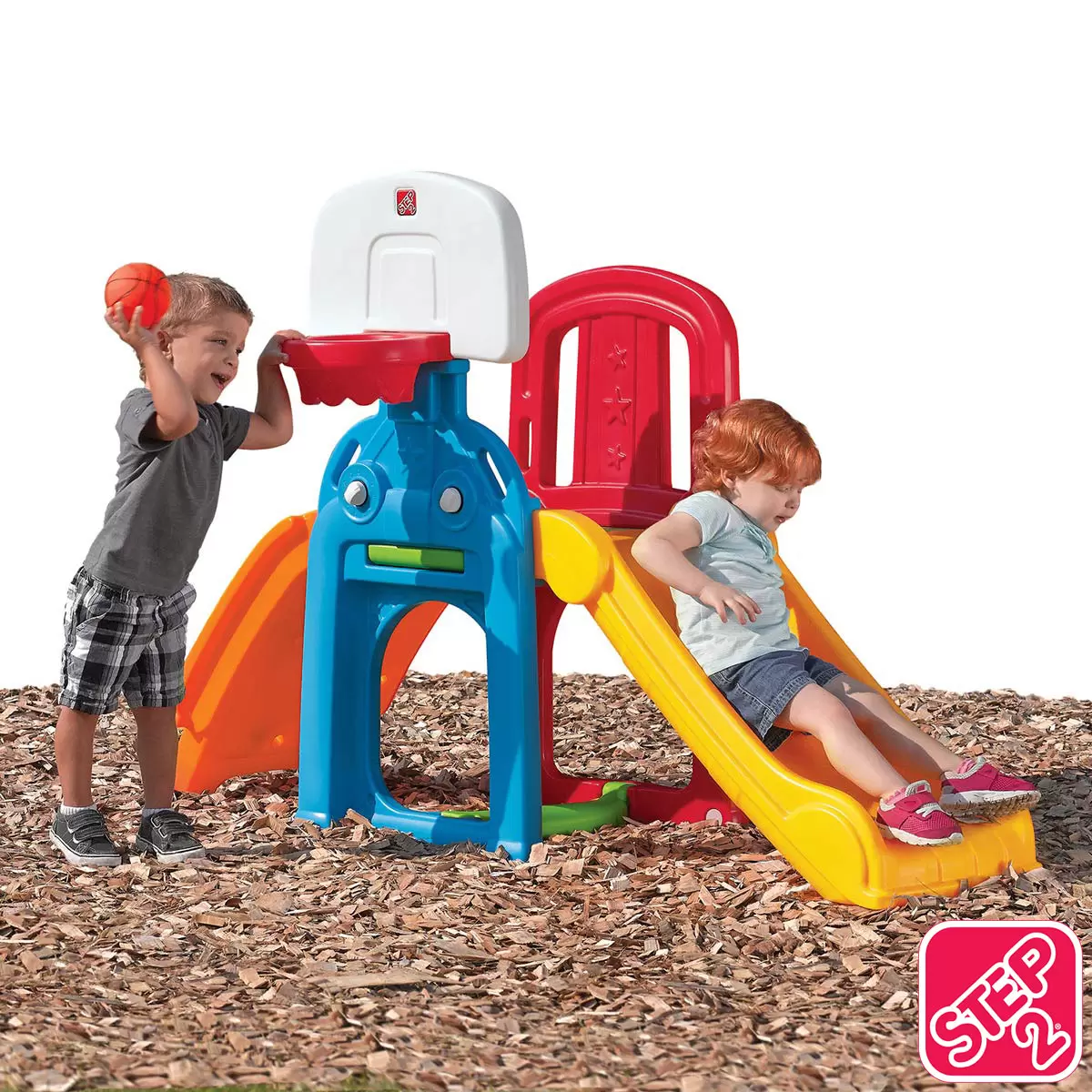 • Features a climbing ladder, slide, basketball hoop, football goal and toss through wall