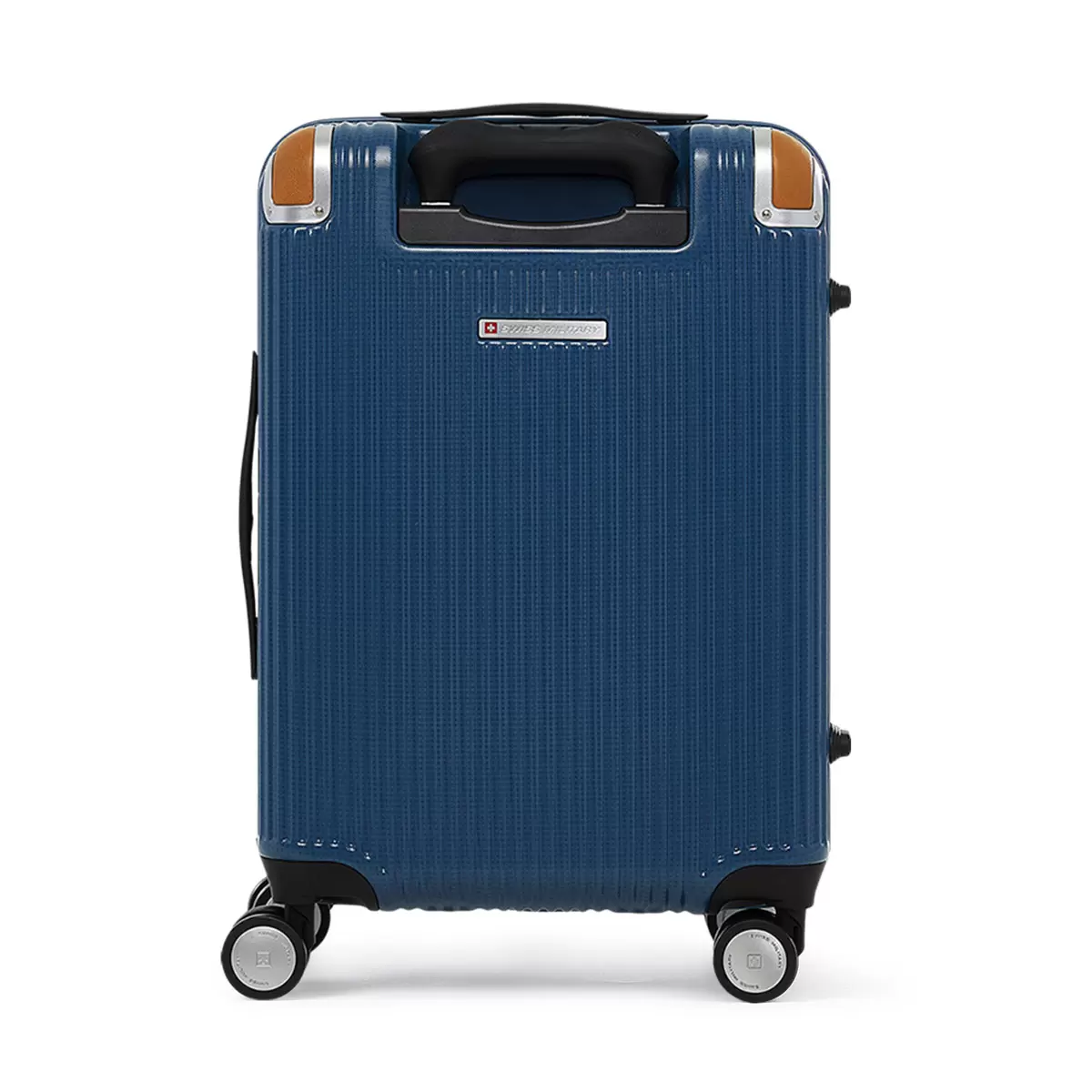Travel effortlessly with the Swiss Military 51cm Carry On Hardside Case in Navy. Featuring a durable polycarbonate shell, 360° rotating double wheels, a fixed TSA combination lock for added security, and a sleek aesthetic design for the modern traveler.