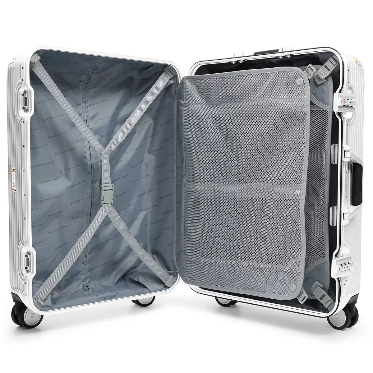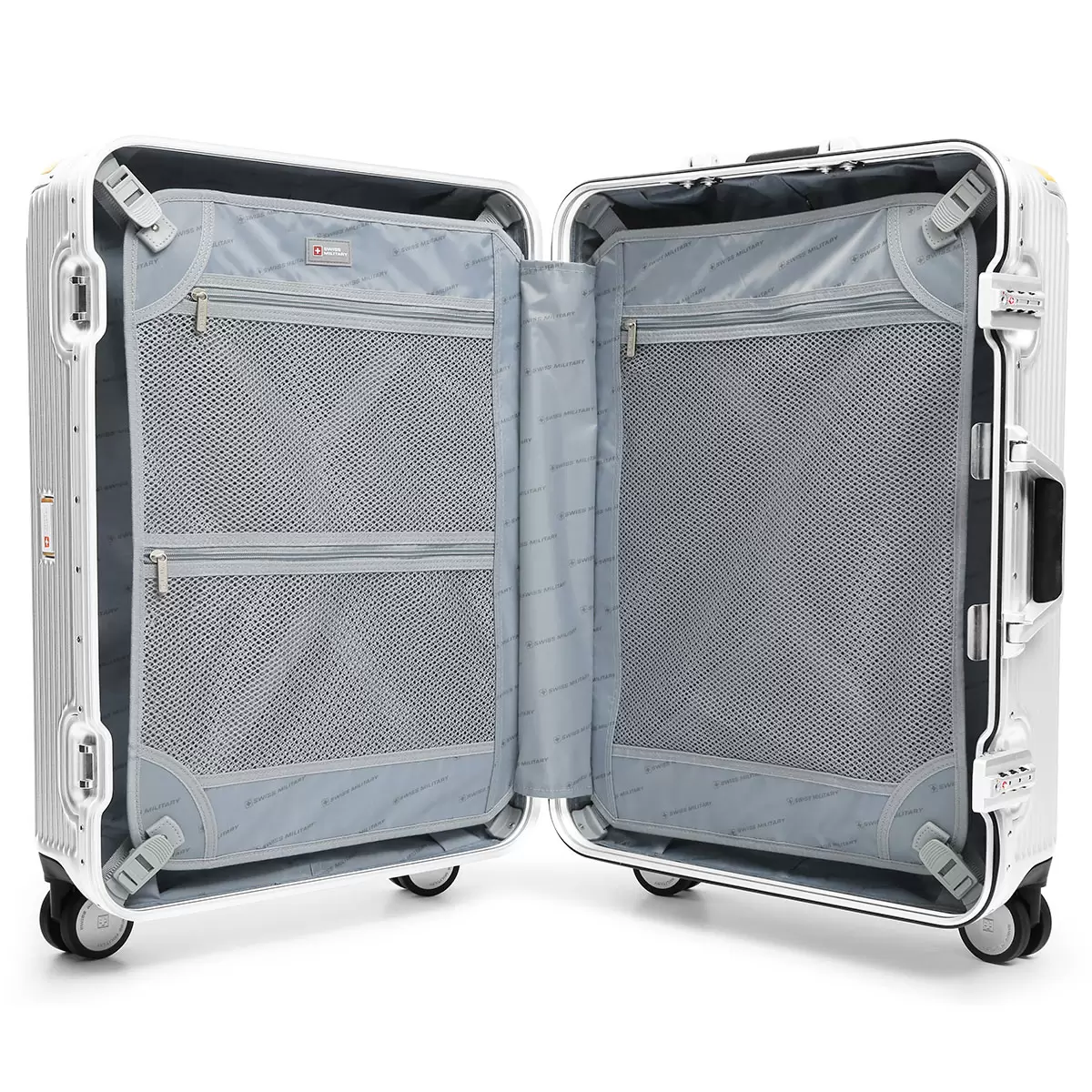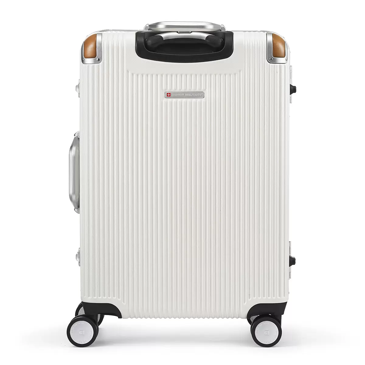 The Swiss Military is a premium line which offers a classic design and comes equipped with natural leather, it is the perfect travel companion in terms of beauty, usefulness, and economy. It is made of solid materials to protect your precious personal items inside, and is a convenient luxury product to join you on your travels. Fitted with smooth moving wheels and stable handles makes this case durable and long lasting. The Swiss Military case is fitted with luxurious natural leather protective corner caps which help absorb and relieve scuffs and bumps. Constructed using German Covestro’s Polycarbonate ensures maximum durability and provides a premium finish which will have heads turning. In addition to the sturdy shell, it also incorporates a robust aluminium edge frame which adds to the luxurious feel and allows for the zipless function. Equipped with a TSA lock to ensure maximum security of your luggage and peace of mind on your travels. Fitted with the advanced double wheel which ensures a smooth glide and also has full 360 degrees rotation allowing for comfort in whichever direction your travel takes you. The wheels are made of urethane which is less abrasive and therefore minimizes noise.