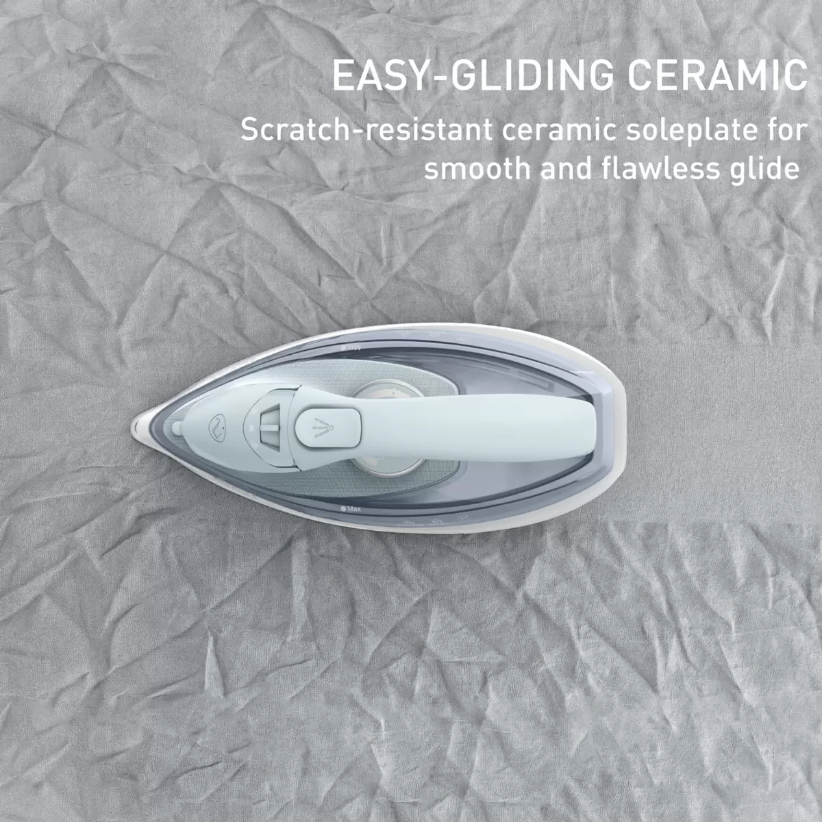 The scratch-resistant ceramic soleplate glides easily across fabrics, while anti-drip protection prevents water stains. With vertical steaming, you can quickly freshen up hanging garments, suits, or even curtains. Plus, the built-in lock system and cord storage make it safe and convenient to carry and store.