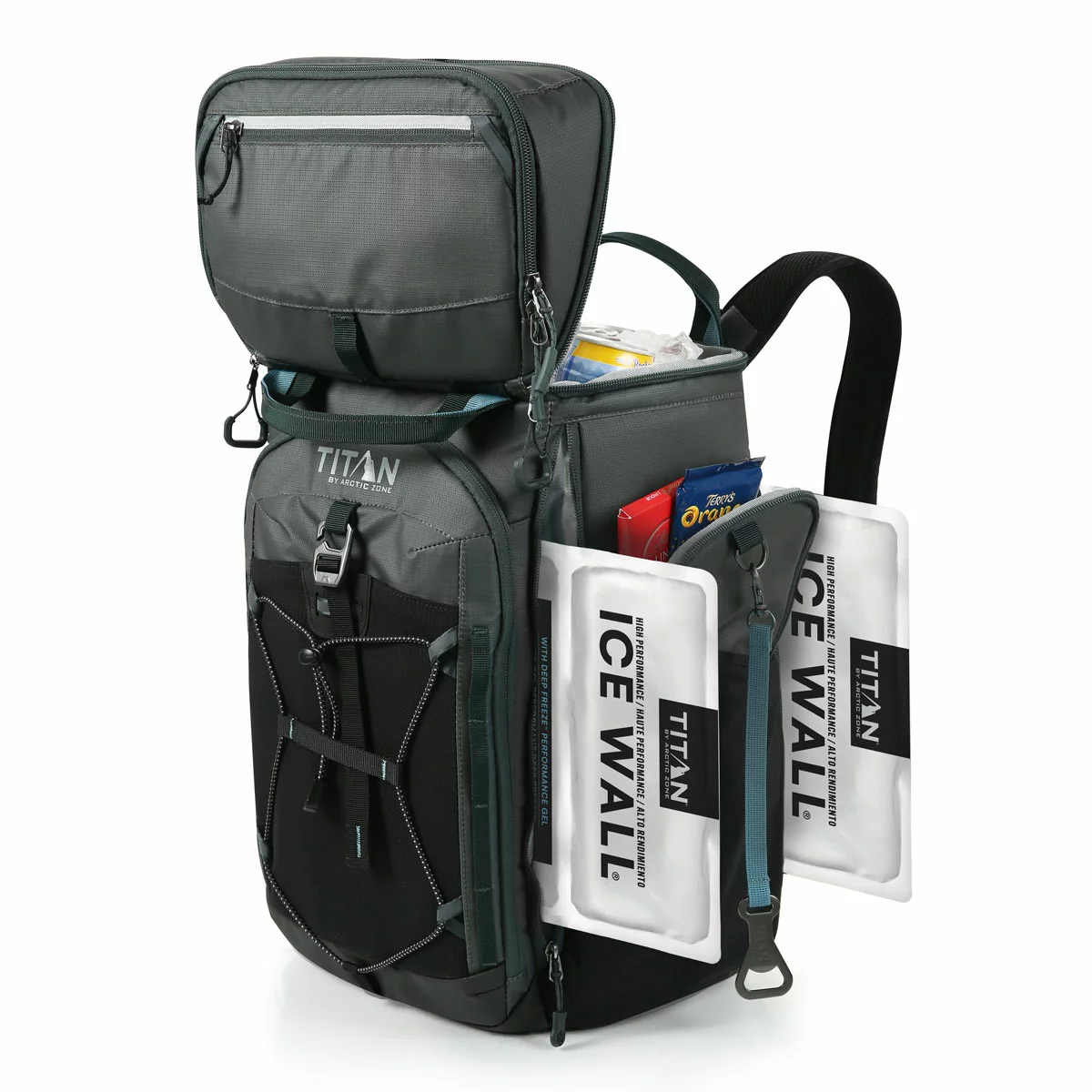 Titan 26 Can Backpack Cooler with 2 Ice Walls in Grey