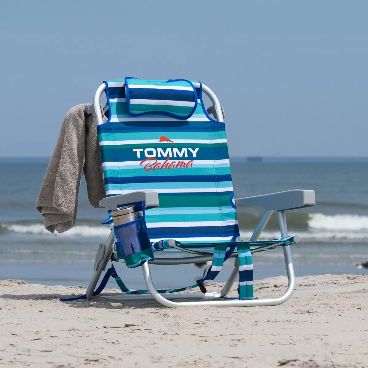 Enjoy ultimate comfort in the sun with the deluxe Tommy Bahama Beach Chair. Featuring a lightweight, rust-resistant aluminium and steel frame, it easily folds into a backpack for hands-free transport—ideal for beach days and camping trips. The chair reclines into five positions for personalised relaxation and includes convenient extras: an insulated pouch, phone holder, towel bar, adjustable pillow, and supportive armrests. It’s the perfect companion for a relaxing day in paradise.