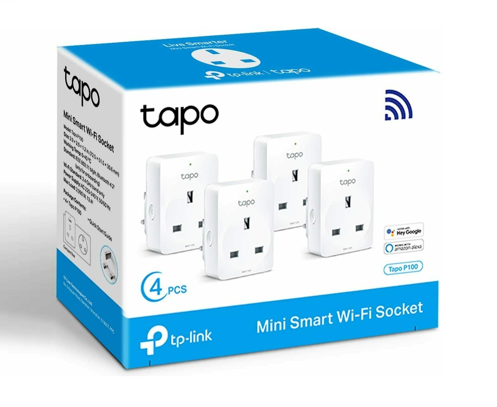 – TP-Link Tapo P100 Smart Socket 4 Pack can Pair the socket with Amazon Alexa or Google Assistant and control it using voice commands