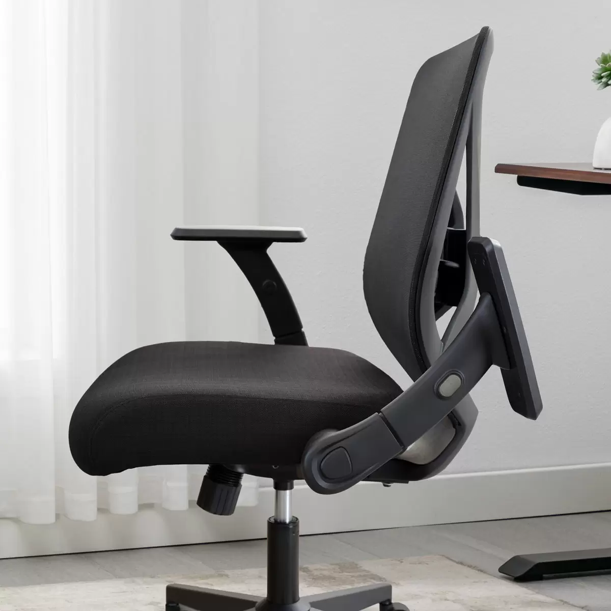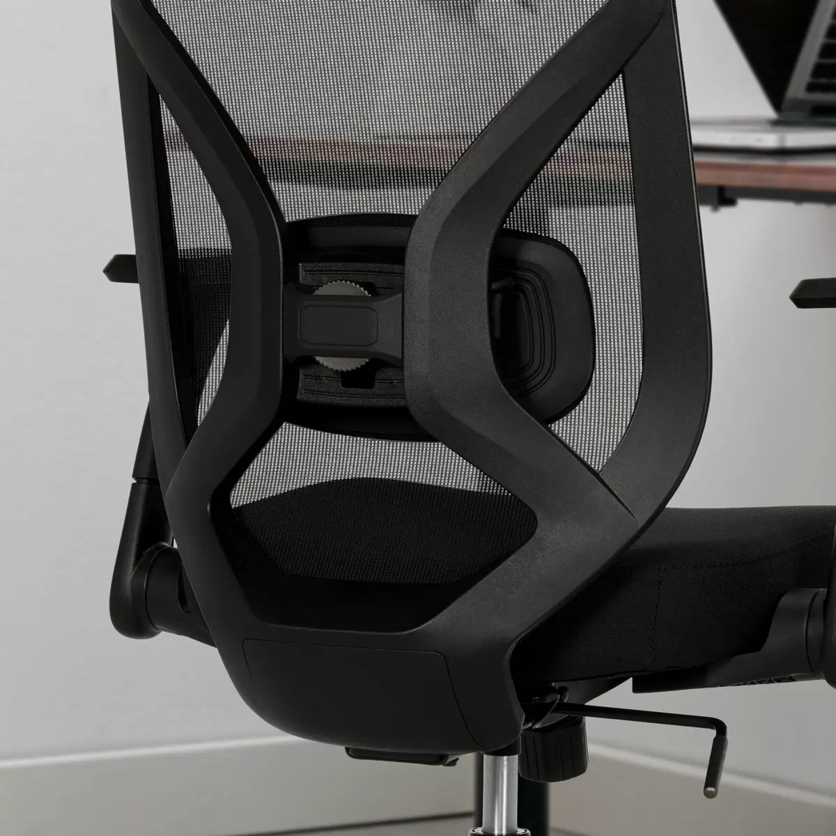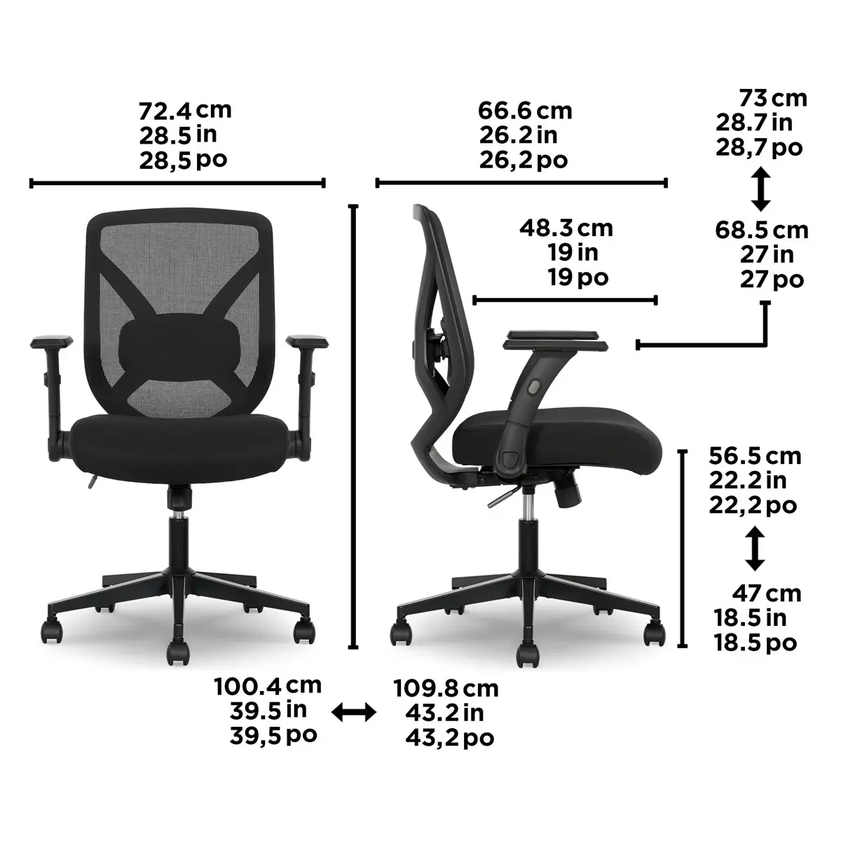 The True Innovations Mesh Office Chair with Flip Up Arms is the perfect mid-back office chair that’s packed with features. This compact chair is designed to give you personalised ergonomic support while saving space when not in use. The adjustable lumbar zone can move up and down or in and out to provide just the right amount of support when you need it. Get ergonomic support with multi-adjustable padded armrests on height adjustable arms that can flip back out of the way when not in use to save space. Breathable suspension mesh on the back helps keep you cool on long workdays while providing constant support. A foam seat with waterfall seat edge keeps you comfortable while reducing pressure. Easily adjust seat height and tilt lockout for the SynchroTech™ seat plate with the convenient control lever while an adjustable tilt tension knob helps dial in the right amount of recline resistance. Get around with ease thanks to the dual-wheel 360° swivel castors attached to a durable metal base which helps this chair support users up to 125 kg.