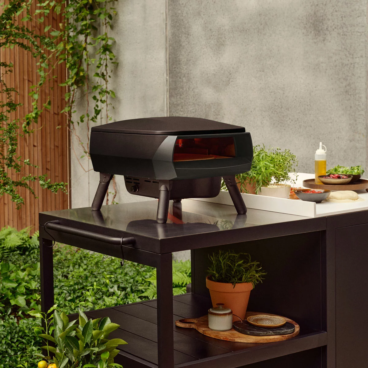 Small in size, big on performance. The Piccolo Rotante 13″ may be compact, but it matches the power and results of larger pizza ovens. Perfect for balconies, smaller patios, or space-conscious setups, it brings authentic Neapolitan-style pizza to even the tightest outdoor areas. With its advanced C-shaped burner and second-generation rotating pizza stone, it delivers consistent heat and perfectly cooked pizzas in just 60–90 seconds. Fast to preheat and easy to use, it makes spontaneous pizza nights simple—whatever the weather. Ready to cook in just 15 minutes, it offers the same technology and quality, in a more compact design.